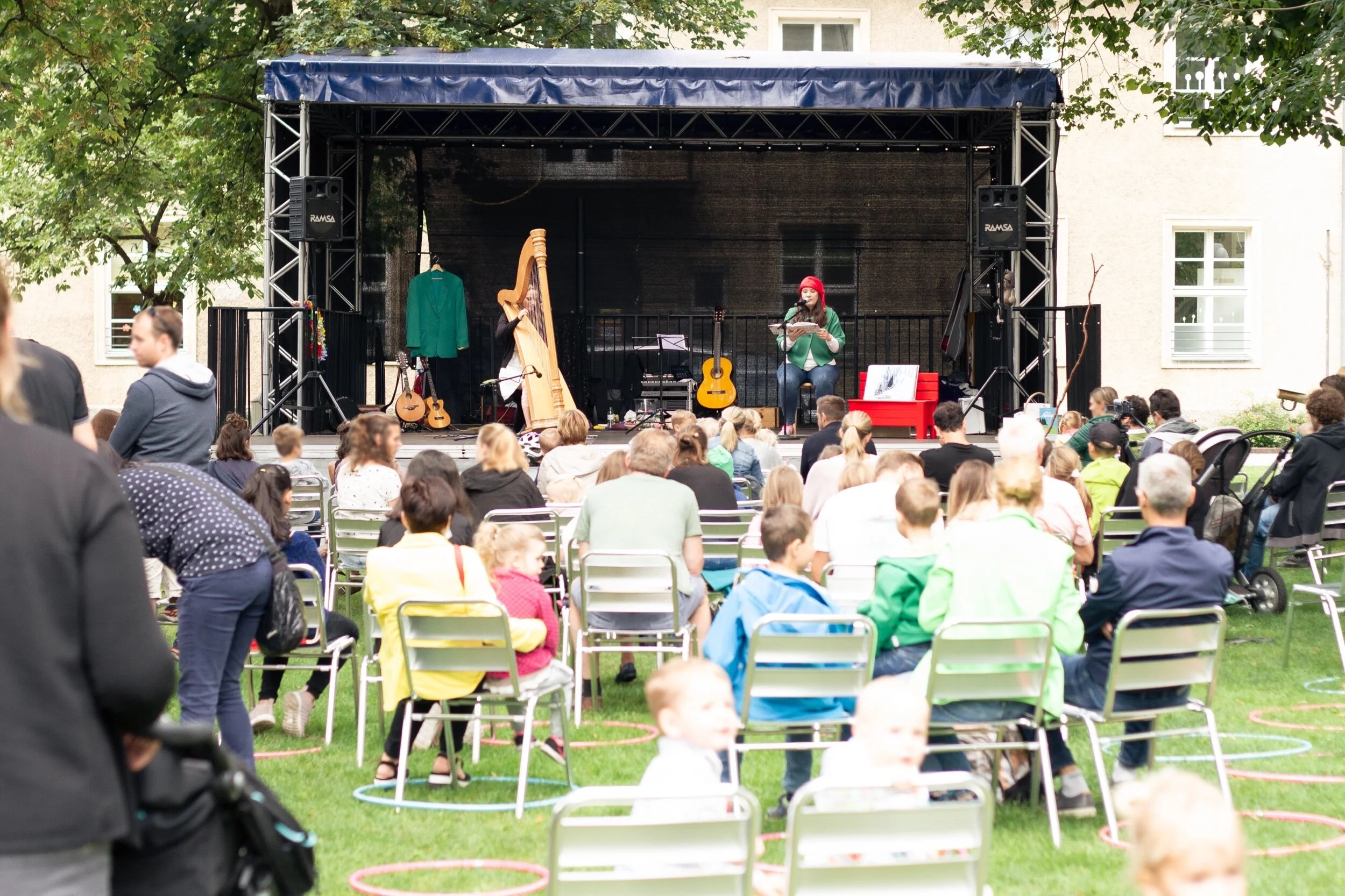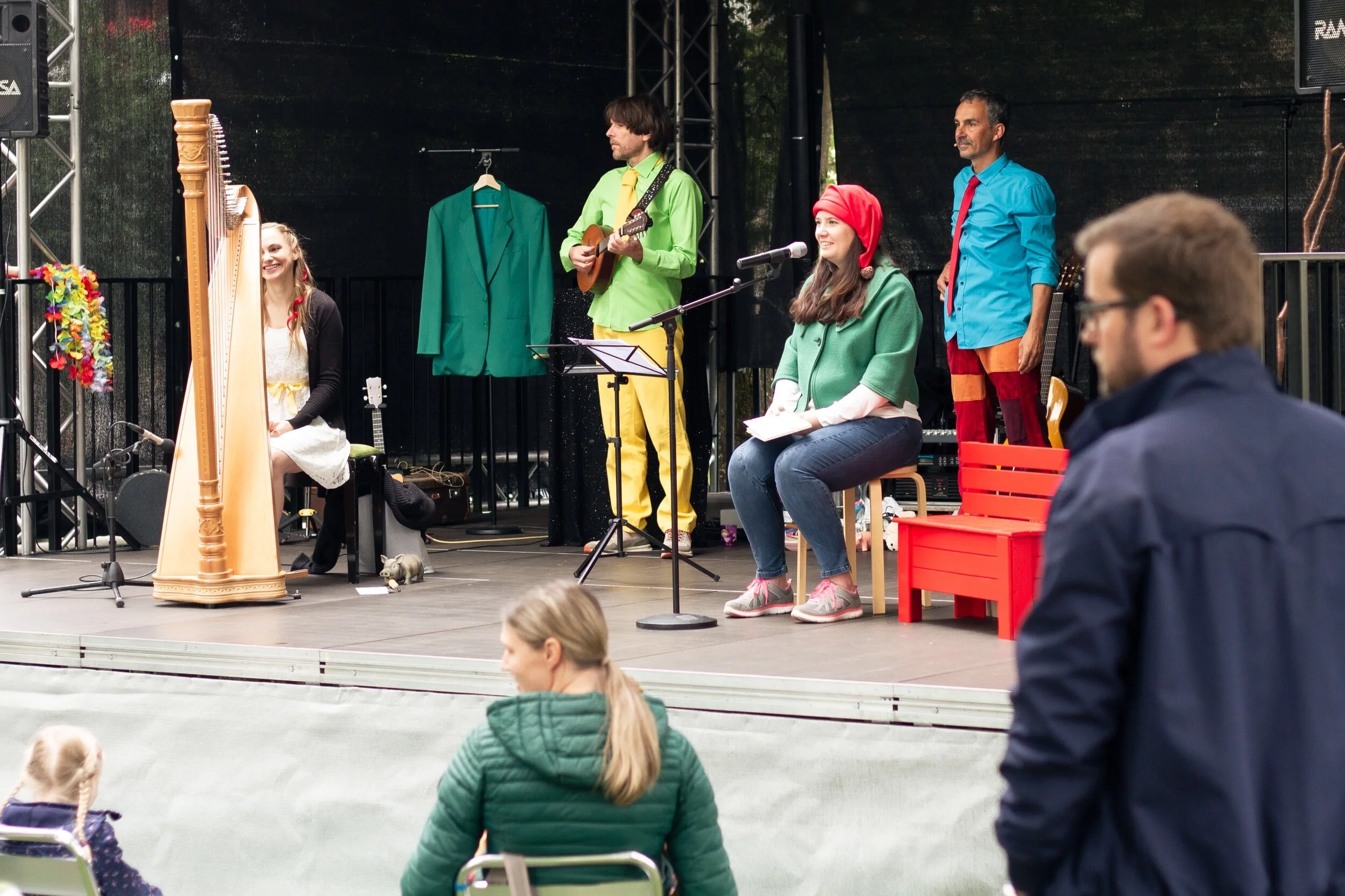 Am 25.7. durfte der Zirbelzapfenzwerg gemeinsam mit RatzFatz auf die Bühne und viele Kinder und Erwachsene mit auf seine Reise nehmen. Ein gelungener Vormittag, das Wetter hat gehalten und die Stimmung im Altstadtpark war zauberhaft. Nicht zuletzt durch die wundervollen Klänge der Harfenelfe Katharina Troger. Frajo Köhle hauchte dem Zirbelzapfenzwerg Song wieder einmal Leben ein und gab sein erstes Live Debüt. Danke an das Stadtmarketing Hall mit Michael Gsaller für diesen perfekten Vormittag in Hall.